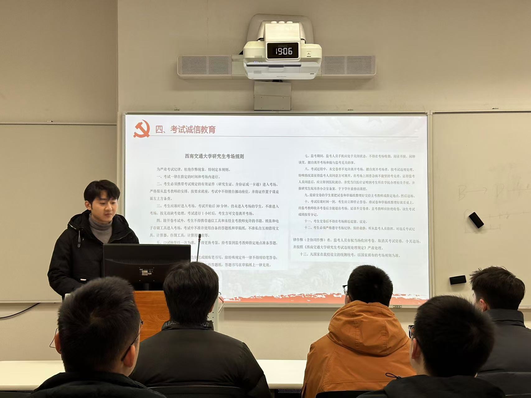 会议第四项:开展考试诚信教育。要求各位党员同志严格遵守学校规章制度,诚信考试。
