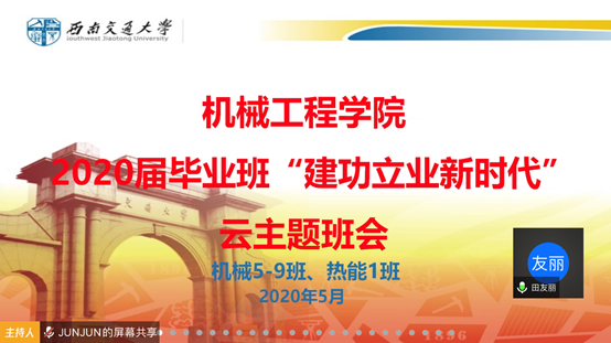 5月12日下午3:00,永利集团3044官网欢迎您2020届本科毕业生辅导员蔡俊俊、李悄鸣、田友丽、袁欣分别为分管班级毕业生主持开展“建功立业新时代”主题班会,旨在加强爱国主义教育,大力弘扬爱国主义精神,抓住新时代新机遇,到祖国最需要的地方建功立业,在新的岗位新的征程上创造更大成绩。学院就业指导老师黄兆国参加了本次活动。