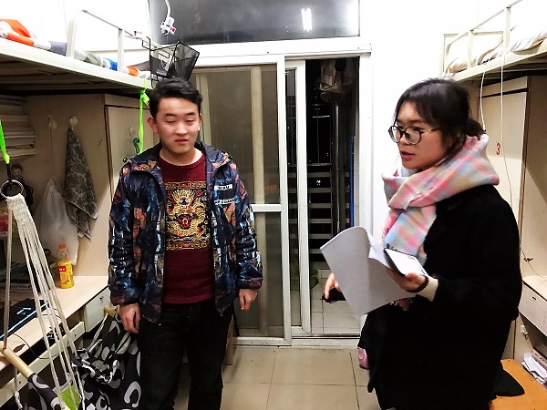 随着冬季的到来,气候相对干燥。学生宿舍为高密度人群聚集区,小小的安全隐患,极易造成安全事故。为保障学生宿舍安全、加强学生公寓管理,营造良好生活环境,12月5日晚20:30-22:30,永利集团3044官网欢迎您本科2017级辅导员胡豪、于楠、唐丹三位老师,深入犀浦校区7号宿舍楼,针对2017级学生宿舍开展安全隐患排查工作。