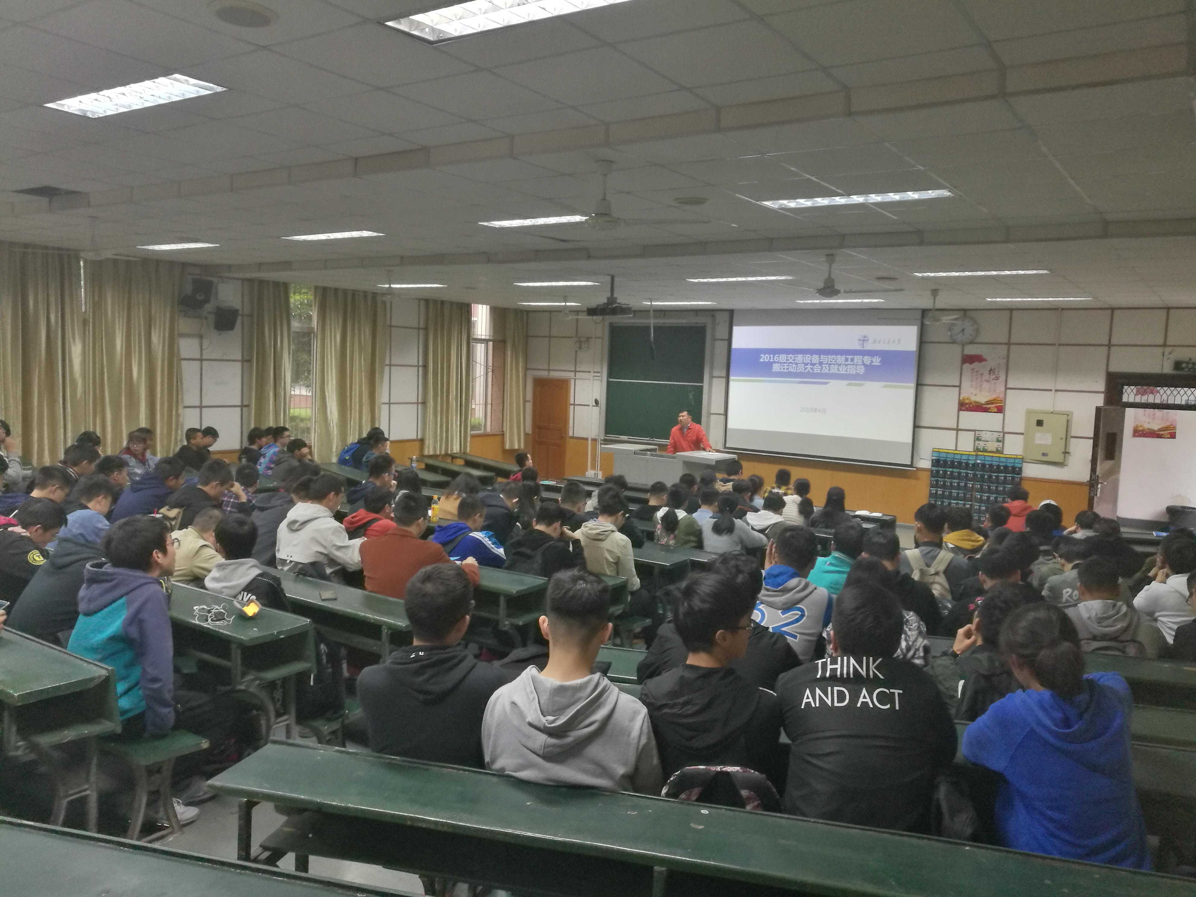 为更好推进16级交通设备与控制工程专业学生搬迁工作平稳过度,落实“三校区一体化”,以及保证就业质量,4月1日,机械学院党委副书记孟凡春赴峨眉校区召开2016级交通设备与控制工程专业搬迁动员大会及就业指导会。