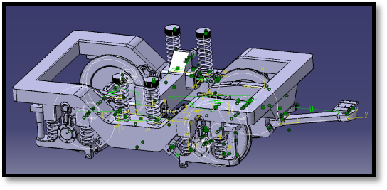 3、在CATIA中完成了HXD2转向架骨架的搭建,并定义好了变量与关系,对转向架进行变量化设计。