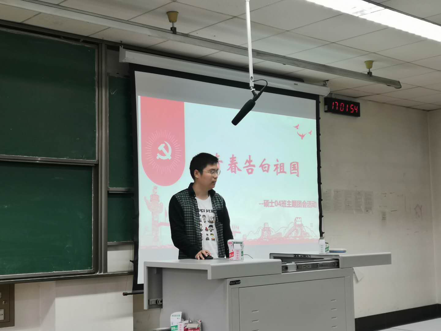 机械硕士04班在团支书的带领下,齐声高唱了团歌《光荣啊!中国共青团》,由此拉开了团组织生活的序幕。之后在团支书的带领下同学们观看了中华人民共和国成立70周年阅兵庆典上习主席发言片段。回顾了70年的风雨兼程,70年的砥砺奋进。激励着青年们积极奋进,也让当代大学生们意识到更应秉承先辈精神,发扬责任意识,勇敢担起自己应负的责任,不负韶华,振兴国家。