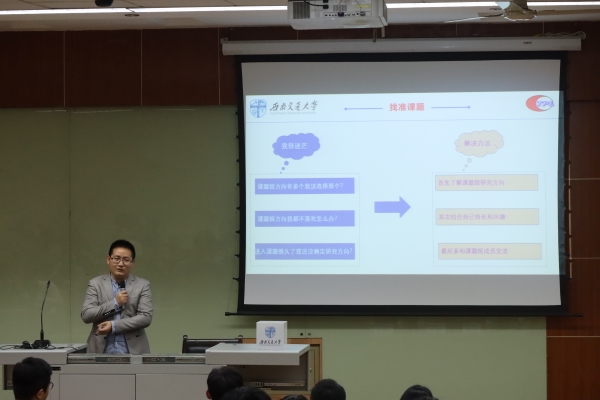活动伊始,活动主持人介绍了此次讲座的具体流程以及四位主讲嘉宾的学术成果与获奖情况。紧接着,四位主讲嘉宾就研究生阶段同学们特别关心的话题进行了经验分享。