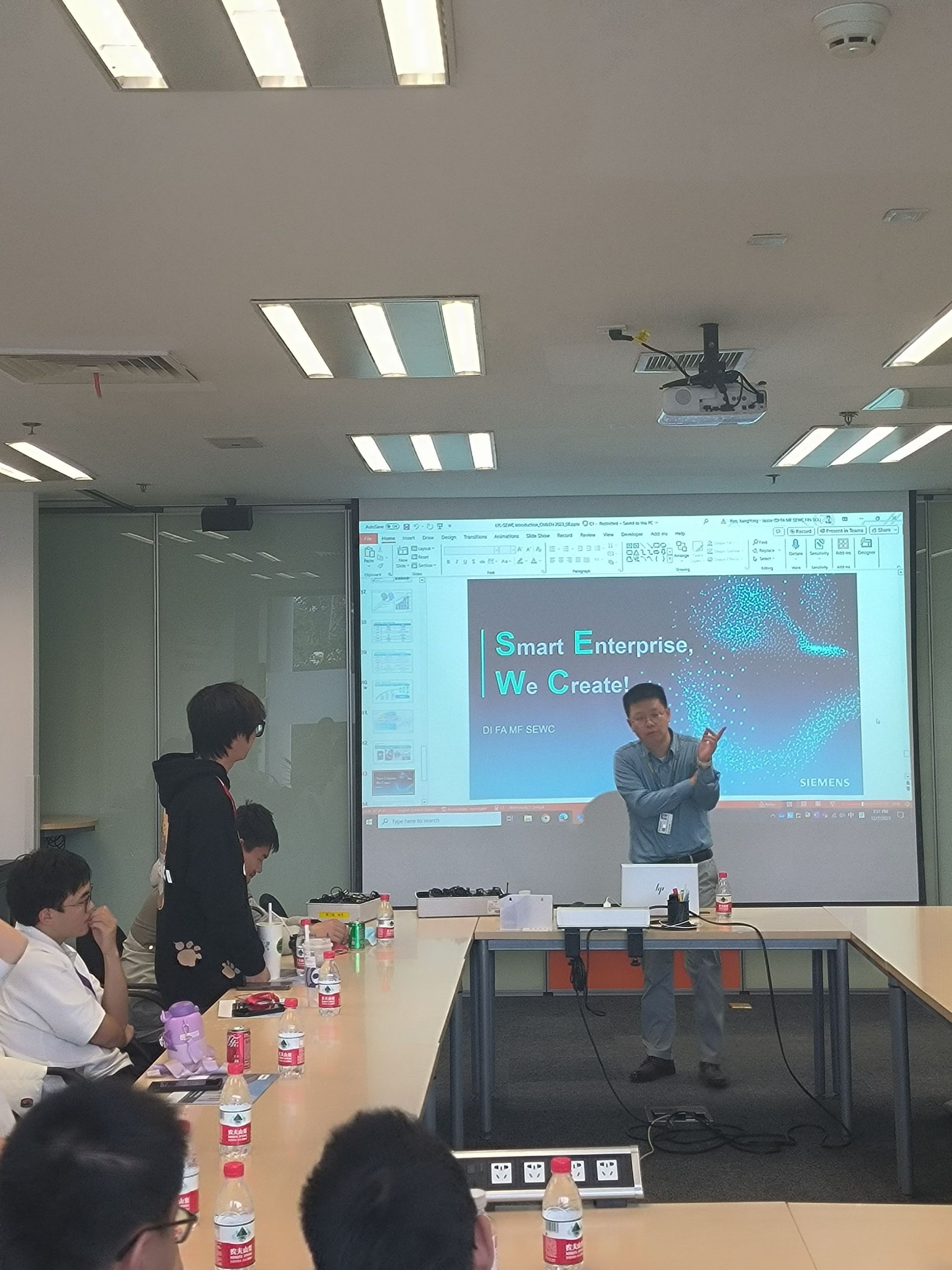 本次参观之旅从西门子公司的大堂开始。来自02级现担任西门子成都公司供应链主管的学长为我们展示了西门子公司的历史和成就。同时,学长还带我们参观了解了西门子公司的产品,包括电气化、自动化和数字化领域的创新。