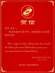 On September 10, 2021, three students successfully applied on the website of the study abroad fund committee, and all of them passed the review and publicity of the University. In October 2021, their application was approved by the national study abroad fund committee!